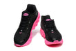 • Color Blocking: A sharp contrast between the black upper and vivid pink midsole/outsole creates a powerful visual impact.