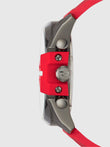 - Strap: Red silicone / rubber